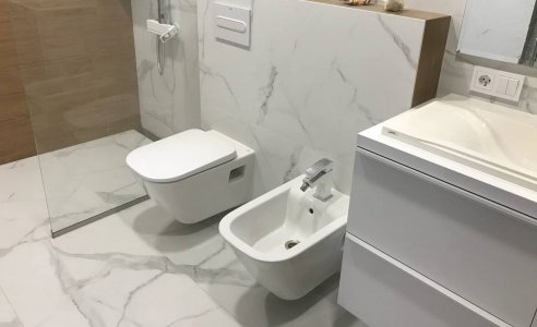 Установка унитазов, крепящихся к стене, что обеспечивает легкость в уборке и экономию пространства.